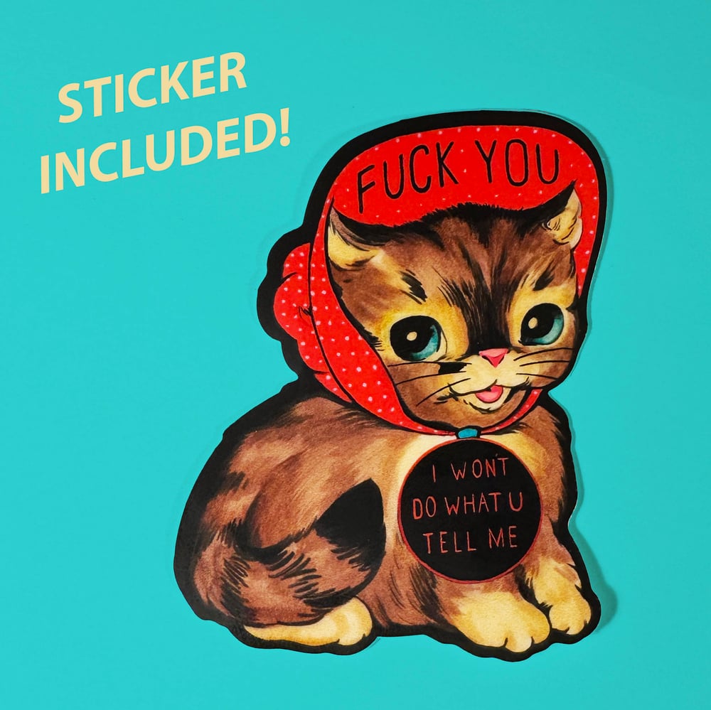 Each print comes with a 3" x 4" 'Do what you tell me' sticker. 10% of each sale will go to a Los Angeles area animal rescue organization.